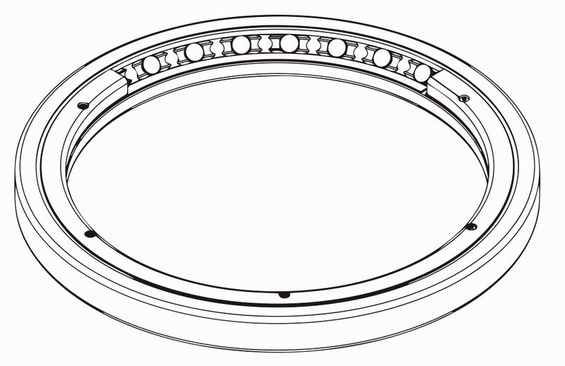 同样为交叉滚子轴承的基本型,外形尺寸和MRB型相同,但结构为外圈整体,内圈分为两片,它适合用于要求外圈旋转精度的场合。